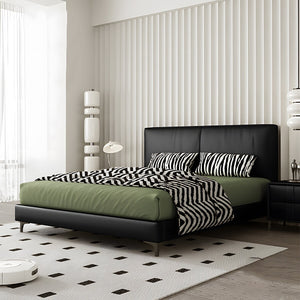 - イタリア式 シンプル 本革 主寝室 手の届く贅沢 モダン トップレイヤーレザー 無垢材 ダブル ベッド カスタマイズ可能 BED-K-022