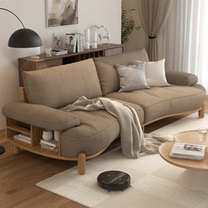 - インドアソファー 室内用 分離式 綿麻生地 ウレタンフォーム ラテックス 天然木 クッション付き サイド収納 快適 復元力 耐久性 ブラウン BSF-K005