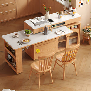 キッチン収納家具 ダイニングテーブル キッチンカウンター サイドテーブル 食事用 キャスター付き 焼結石天板 スライドコンセント 省スペース ナチュラル CZ-K057