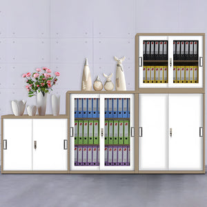 - オフィスキャビネット ファイリングキャビネット スチール製書庫 書類整理棚 冷間成形鋼 引き戸 可動棚板 錠付き シリンダー錠 パウダーコーティング ホワイト CWG-M011