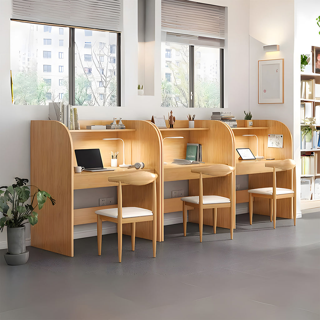 - オフィスデスク デスク 自習室用デスク 事務机 木目調 R加工 本棚 R加工 配線孔付き BGZ-T142