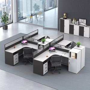 - L字型天板 エコ板材 収納棚 三段式 パーティション バイカラー デスク オフィスデスク ワークデスク シンプル 洗練 機能性 ホワイト カスタマイズ可能 BGZ-K-209