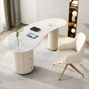 セラミック天板 引き出し スリット入り 丸み 広さ マーブル柄 デスク オフィスデスク ワークデスク ベージュ シック 上質 ホワイト BGZ-K-171