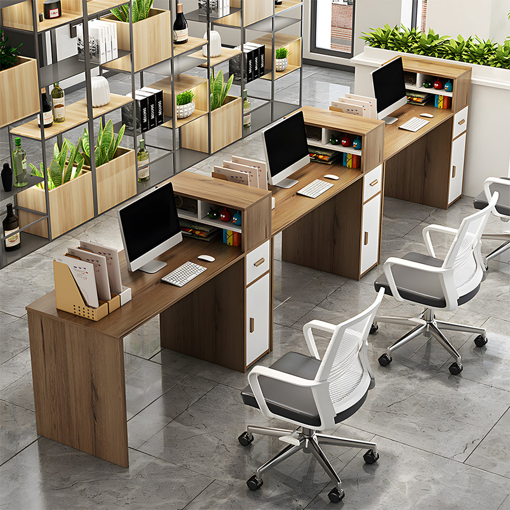 - オフィスデスク 書斎デスク オフィス家具 木目調 引出し付き 扉付き収納 トップパネル付き シンプル ナチュラル カスタマイズ可能 BGZ-M-139