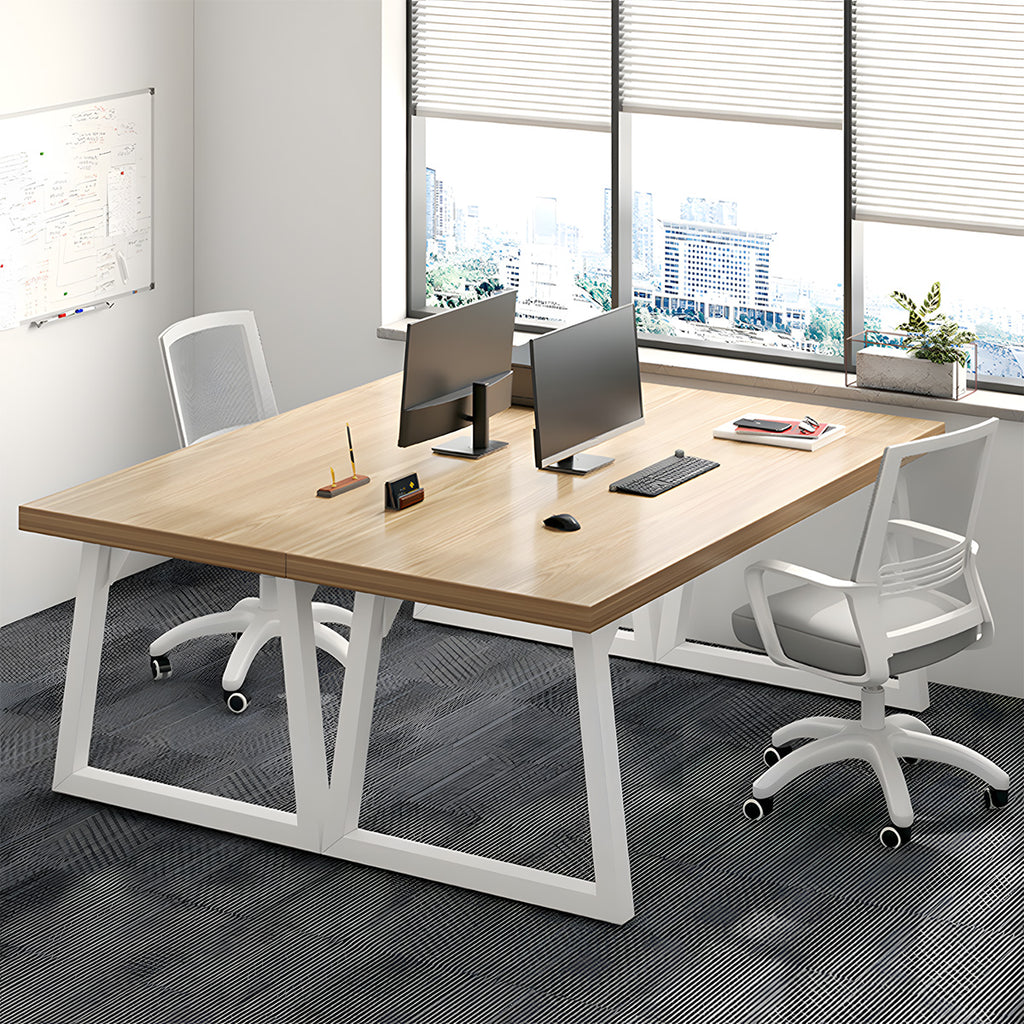 - 幅広 スチールフレーム 台形 横フレーム 厚い天板 エッジ加工 デスク オフィスデスク パソコンデスク 木目調 上質 ミニマル BGZ-C076