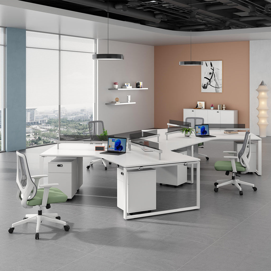 - ワークデスク 事務机 U字型オフィスデスク PCデスク パーティション エコ板材 スチールフレーム オフィスデスク シンプル ホワイト MG-BGZ-LLS16