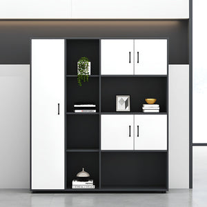 - オフィスキャビネット ディスプレイラック 本棚 キャビネット 収納ラック オープン収納 扉付き 4段 おしゃれ カスタマイズ可能 LBG-K016