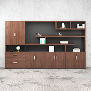 オフィスキャビネット ディスプレイラック 本棚 キャビネット 収納ラック 多段式 扉付き 鍵付き 大容量収納 おしゃれ ウォールナット LBG-K009