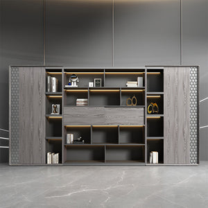 - オフィスキャビネット ディスプレイラック 本棚 収納ラック 収納棚 多段式 扉付き収納 ワードローブ 人感センサーライト モダン カスタマイズ可能 LBG-K028