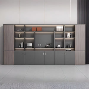 - エコ板材 耐久性 扉付き収納 オープン収納 大容量 多段式 分類収納 ハンガーパイプ 台輪 収納棚 キャビネット オフィス用 落ち着き 機能的 実用 カスタマイズ可能 CWG-K-130