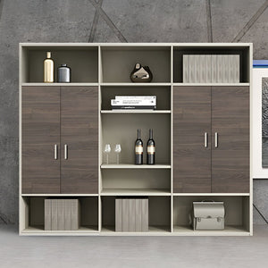 - キャビネット 壁面収納 リビングキャビネット オープン収納 バイカラーデザイン 扉付き収納 ウォールナット シンプル モダン カスタマイズ可能 CWG-K-126