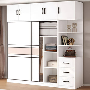 エコ板材 多様な収納 分類収納 大容量 引き戸 省スペース 物干し竿 ワードローブ 壁面収納 クローゼット すっきり 収納力 インテリア性 ホワイト グレー カスタマイズ可能 YG-K017
