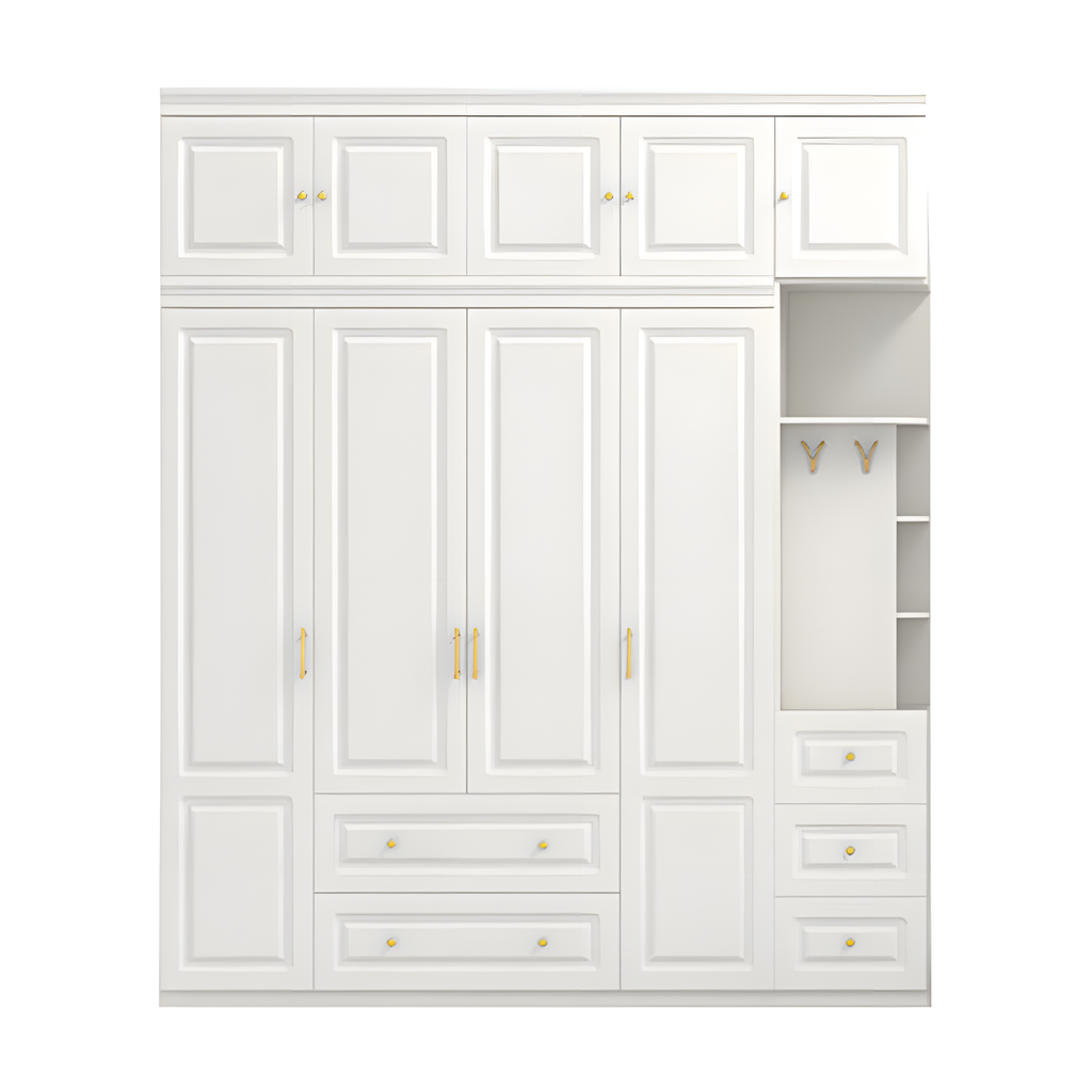 - キャビネット クローゼット 壁面収納 ワードローブ 洋服収納 エコ板材 大容量 サイド収納 台輪付き ホワイト SNG-S020