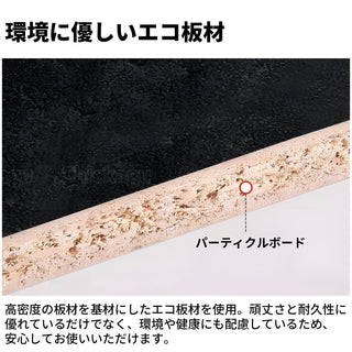 高密度の板材を基材にしたエコ板材を使用。頑丈さと耐久性