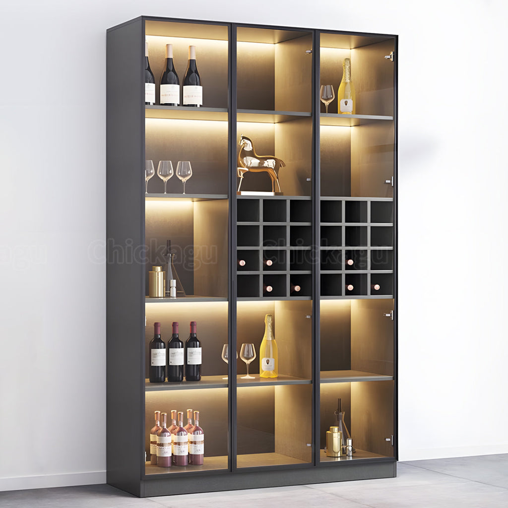 - ワイン棚 ワイン収納 LEDライト キッチン収納 リビング収納 木製棚 収納棚 ワインラック オシャレ ブラック カスタマイズ可能 SNG-015