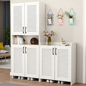 - 頑丈 耐久性 多段式 分類収納 シャッター扉 通気性 転び止めバー シューズキャビネット 下駄箱 収納棚 シンプル 実用 木目調 ナチュラル ホワイト カスタマイズ可能 XG-K011