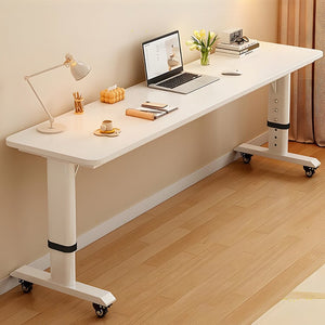 - インドアデスク デスク テーブル 昇降可能 エコ板材 ゆとり スリム 角丸加工 スチールフレーム キャスター ストッパー付き T字型 三角構造 安定性 簡素 使い勝手 SNZ-C008