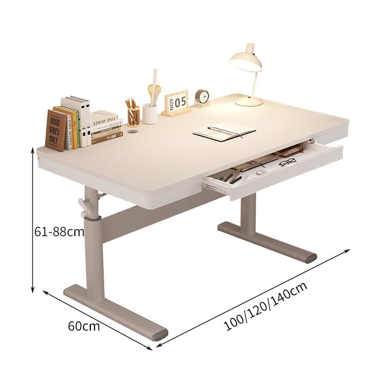 - 広い天板 昇降可能 引き出し T字型脚 安定性 補強フレーム デスク 学習デスク パソコンデスク シンプル 使いやすい 実用 ホワイト SNZ-C025
