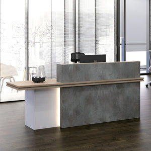 - エコ板材 分厚い天板 重厚感 上部天板 LEDライト 扉付き収納 大容量 マルチカラー 受付カウンター カウンター 洗練 機能的 モダン ホワイト カスタマイズ可能 JDT-K-008