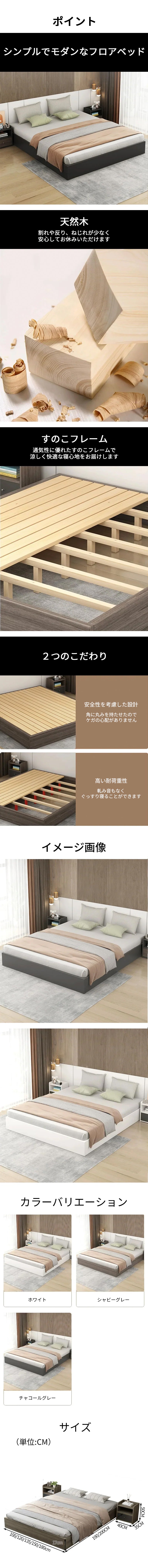 ベッド すのこベッド フロアベッド 天然木製 R仕上げ 高耐荷重 すのこ床板 シンプルモダン ホワイト シャビ―グレー カスタマイズ可能 BED-K-089