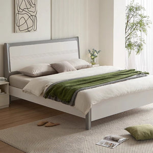 - すのこ高さ調節可能 背もたれ 天然木 補強フレーム R加工 安定性 頑丈 すのこ ベッド 二人用 すっきり シンプル グレー BED-K-060