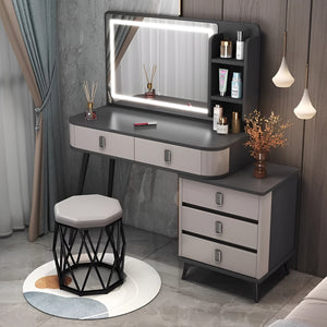 - LEDライト 調光機能 鏡 エコ板材 頑丈 収納ラック 引き出し 仕切り 伸縮可能 省スペース ドレッサー デスク 化粧台 落ち着き 機能的 実用 グレー ホワイト HZT-K033