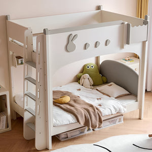 - 二段ベッド ベッド 木製二段ベッド 子供用 安全 ベッドガード 耐荷重 収納付き ハシゴ かわいい 補強機構 メラミン化粧板 北欧風 ホワイト SCC-K012