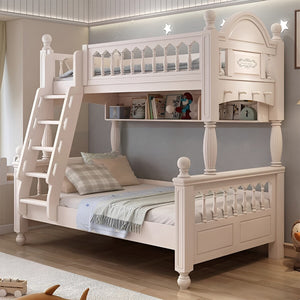 - 天然木 耐久性 跳ね上げ収納 引き出し 分類収納 高いベッドガード 取っ手付きはしご 太い角柱 スライドベッド ベッド 二段ベッド シンプル モダン 実用 ホワイト SCC-K035