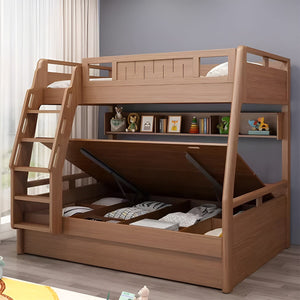 - 天然木 頑丈 耐久性 ベッドガード 太い角柱 取っ手付きはしご 階段 引き出し 跳ね上げ収納 ベッド 二段ベッド 穏やか 安心安全 使い勝手 カスタマイズ可能 SCC-K034