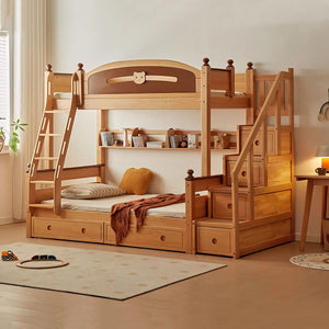 - 天然木 太い角柱 頑丈 安定性 ベッドガード 引き出し シェルフ はしご 斜め掛け 二段ベッド ベッド 子供用 木目調 穏やか 落ち着き ウォールナット SCC-K020