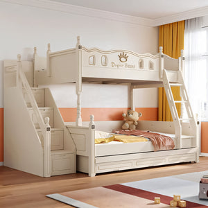 - 一枚板 太い角柱 頑丈 安定性 ベッドガード はしご 斜め掛け 丸み スライドベッド 引き出し シェルフ 2段ベッド ベッド シック 機能的 カスタマイズ可能 SCC-C032