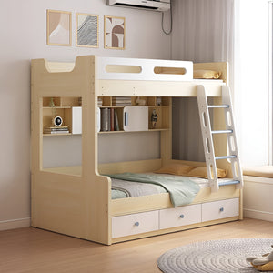 - メラミン化粧板 頑丈 アイアンフレーム 安定性 ベッドガード はしご 取っ手 引き出し シェルフ 大容量 2段ベッド ベッド 子供用 ナチュラル 機能的 ナチュラル ホワイト カスタマイズ可能 SCC-K055