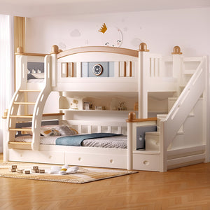 収納棚 引き出し 大容量 分類収納 天然木 太い角柱 安定性 ベッドガード 分割可能 ベッド 2段ベッド 子供用 シック 実用的 ホワイト SCC-K033