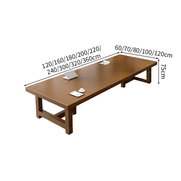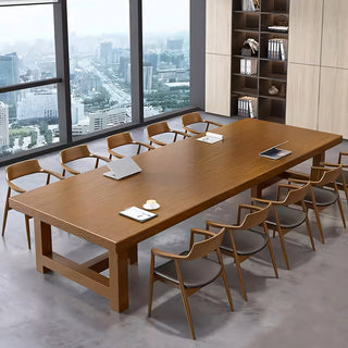 - 分厚い天板 重厚感 天然パイン材 太い脚 貫 補強フレーム 安定性 会議テーブル テーブル 木目調 穏やか ナチュラル カスタマイズ可能 HYZ-K021