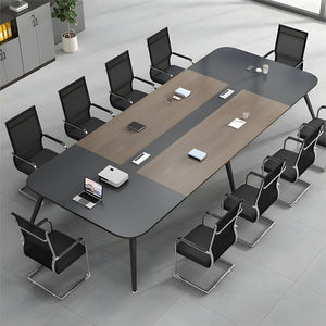 - エコ板材 厚い天板 幅広 配線ボックス R仕上げ スチールフレーム 会議テーブル テーブル ミーティング シンプル 洗練 カスタマイズ可能 HYZ-C026
