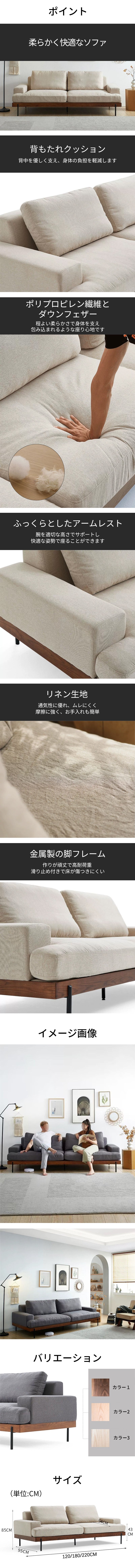 - ソファー インドア インドアソファー クッション ダウン リネン生地 通気性 金属フレーム 柔らか 快適 蒸れない ダークグレー ホワイト カスタマイズ可能 BSF-K013