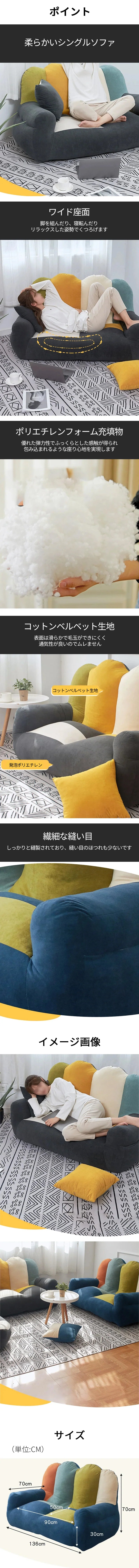 - ソファー 室内 インドア インドアソファー 一人掛け 奥行き 横幅 オレンジ グレー 弾力性 ふかふか 通気性 蒸れにくい 柔らか 大きい BSF-K002