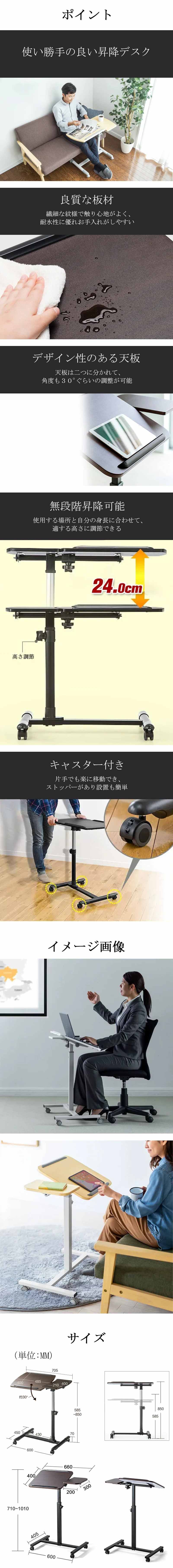 デスク 昇降 パソコンデスク 昇降デスク インドアデスク 事務用 昇降可能 移動可能 耐水性 実用性 キャスター付き ベッド上 便利 ナチュラル SJZ-K002