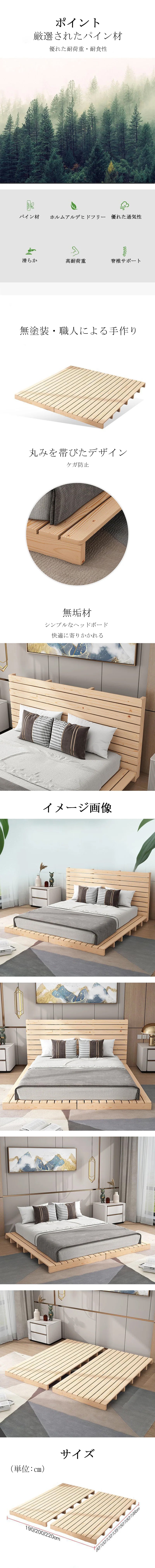 - ベット ベッドフレーム ロースタイルシングル シングルベッド スノコベッド 天然木 パイン材 高耐荷重 ノーペンキ 高通気 角丸 シンプル オーク カスタマイズ可能 BED-K-069