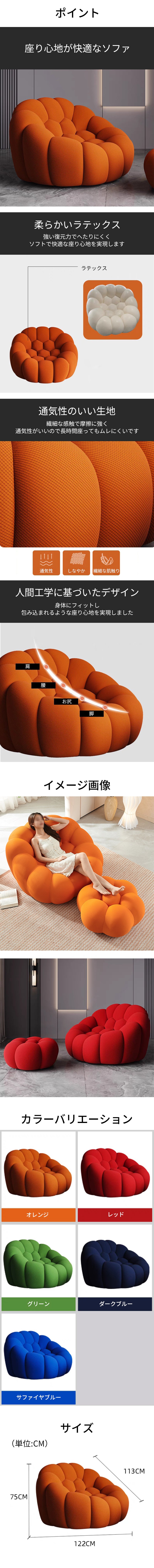 - 座椅子 ビーズクッション クッション ソファ ラテックス 復元力 通気性 蒸れない 人間工学 フィット感 おしゃれ オレンジ カスタマイズ可能 BSF-K022