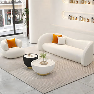 - シェルパ生地 モコモコ 人間工学 広い座面 高密度ウレタン 天然木枠組み ソファ 応接ソファ 安定感 柔らか 弾力性 快適 シック ホワイト カスタマイズ可能 JDSF-C004-kc