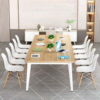- シンプル 温かみ 木目調 優しい 会議テーブル ミーティングテーブル スチール メラミン化粧板 ホワイト ブラック HYZ-M-007-kc
