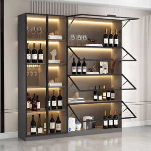 - キッチン収納 リビング収納 木製棚 収納棚 ワインラック ワイン棚 ワイン収納 LEDライト エコ素材 強化ガラス アルミ合金製エッジ ブラック カスタマイズ可能 JG-M015
