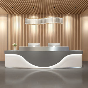 - オシャレ シック スタイリッシュ 曲線的 錠付き引き出し 受付カウンター フロント メラミン化粧板 LEDライト カスタマイズ可能 JDT-K-077