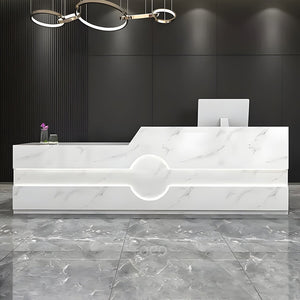 - 鏡面仕上げ マーブル柄 配線穴キャップ 収納付き 上部天板 仕切り板 LEDライト 受付カウンター カウンター レジ台 モダン 上質 高級感 カスタマイズ可能 JDT-K-112