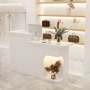 - 収納機能 引き出し 扉付き R仕上げ 上部天板 厚い カウンター レジ台 受付カウンター シンプル シック 機能的 LEDライト ホワイト カスタマイズ可 JDT-K-045