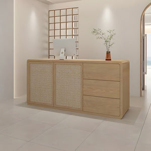 - 木目調 ナチュラル 温もり 温かみ ラタン編み 大容量収納 受付カウンター レジカウンター メラミン化粧板 カスタマイズ可能 JDT-K-143