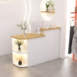- 収納 多目的 分類収納 錠付き 厚い天板 展示棚 R仕上げ 木目調 カウンター 受付カウンター レジ台 すっきり 機能性 使い勝手 LEDライト ホワイト カスタマイズ可能 JDT-K031