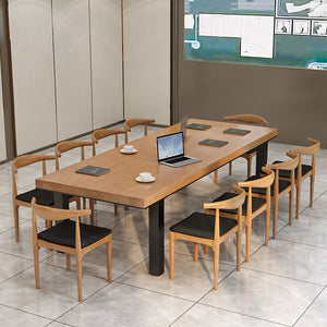 - アイアン脚 分厚い天板 天然木 重厚感 頑丈 広め ゆとり 異素材ミックス テーブル 会議テーブル 会議室 木目調 落ち着き ナチュラル カスタマイズ可能 HYZ-K-095