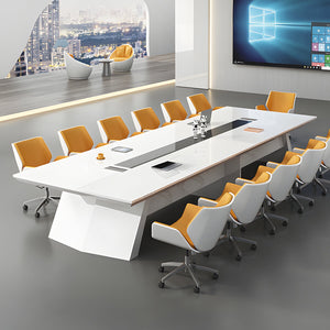 - 鏡面仕上げ 幾何学的 すっきり 分厚い 重厚感 配線孔 幕板 安定性 テーブル 会議テーブル 洗練 モダン スタイリッシュ ホワイト カスタマイズ可能 HYZ-K-048